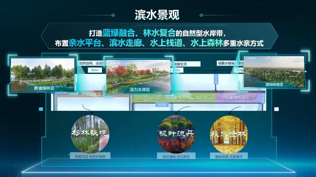 在“无废”建设的引领下,老港基地坚持高标准、高质量发展方向。通过实施“两廊两带,五组团多节点”的规划建设,精心打造“春花、夏花”观花段与“秋叶、亲水”赏叶段,并构筑集“静谧绿林”、“活力水岸”与“湿地体验”于一体的滨水景观带,园区未来的绿化覆盖率将超过45%。