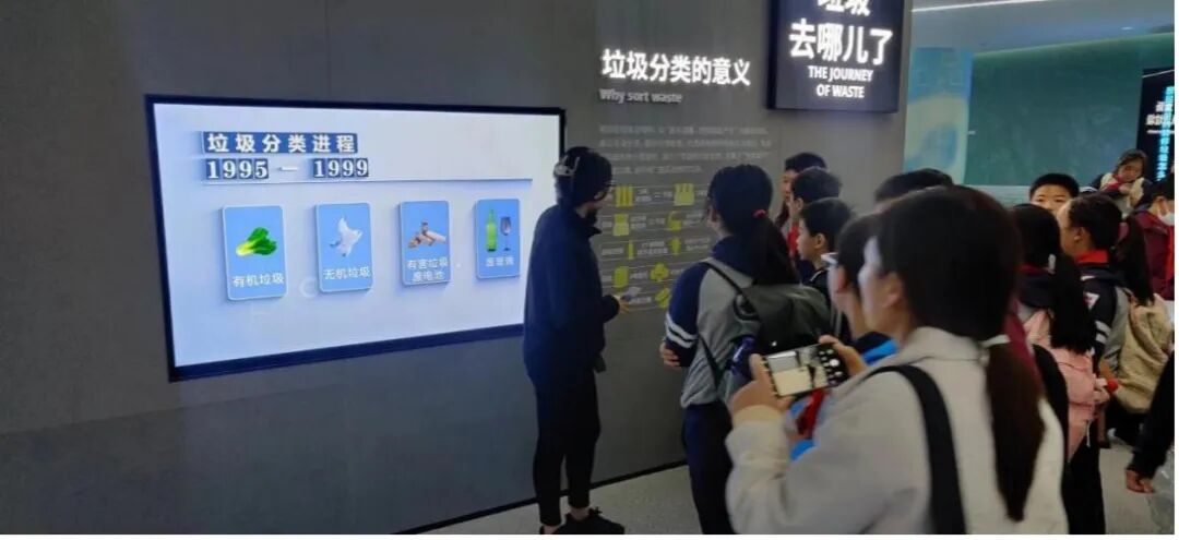 基地还为中小学生团体创建了“垃圾分类进课堂”活动。学生们在参观后,将在阶梯教室观看垃圾分类科普教育视频,并由讲解员针对性地开展问答讨论,以巩固和深化所学的分类知识。